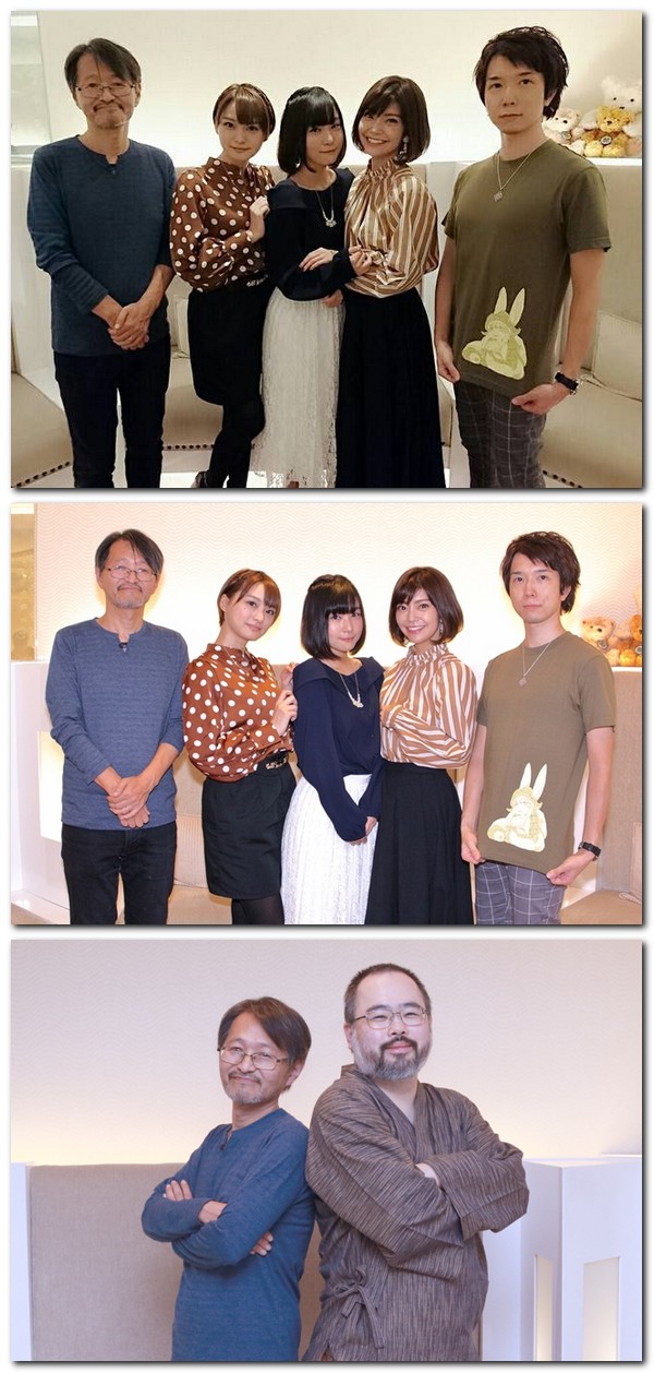 Attēlā: sarunu šovā pēc raidījuma (no kreisās uz labo): seriāla galvenais režisors Masajuki Kojima, balss aktrises Šiori Izawa (anime Nanachi), Miyu Tomita (anime Riko) un Maria Ise (anime Regs); Uzņēmuma Kadokawa Shimpei Yamashita producents.