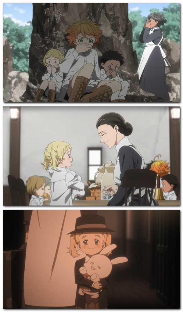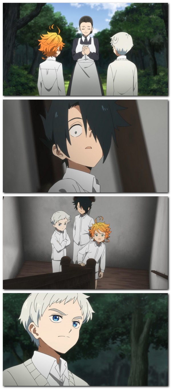 Patversme, ko sauc „Greisfīlda”, kļūst par Emmas mājām. Meitene ir visai zinātkāra, un šīs īpašības nospēlē negatīvu lomu. Mājas uzraudzi sauc par Izabellu. Viņa pret bērniem izturas mīļi, tāpēc iegūst iesauku „mamma”. Viņa rūpējas par audzēkņu tiesību izpildi, taču viņiem ir jāievēro viens stingrs noteikums. Tas aizliedz audzēkņiem atstāt patversmes teritoriju. Jebkādos apstākļus bērni nedrīkst to darīt. Taču 2045. gadā Emma un Normans nolemj izdarīt neatļauto. Pārkāpjot noteikumus, viņi uzzina šokējošo patiesību.