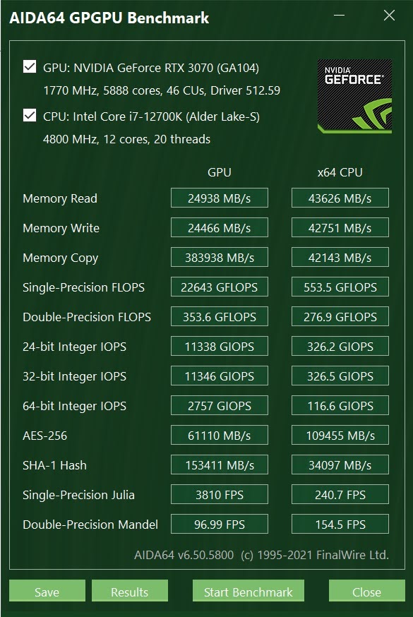 ROG Maximus Z690 Formula izpelnās 1930 Single-Core punktus un 17 739 Multi-Core testa punktus, bet OpenCL testā tika iegūts zems 132 901 punkta rezultāts. Arī šie ir pieticīgi Z690 rezultāti ar 12. paaudzes i9.