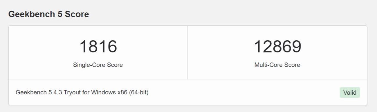 Tagad atpakaļ pie klasiskajiem veiktspējas testiem – Geekbench. Tie pārbauda procesora viena kodola vai vairāku kodolu kopdarbības spējas pildot dažādus uzdevumus. ROG STRIX B660-F GAMING WIFI iegūst 1816 Single-Core punktus un 12 869 Multi-Core testa punktus