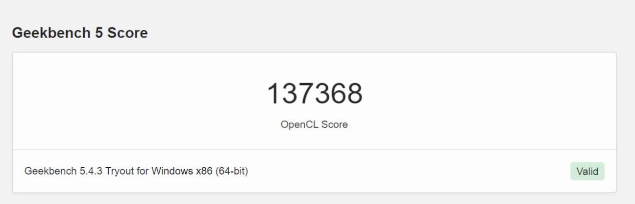 Senāk apskatītā ROG Maximus XIII Extreme uzrādīja 1741 Single-Core punktus un 9371 Multi-Core testa punktus, bet OpenCL testā tika iegūts jūtami augstāks 195 698 punktu rezultāts.