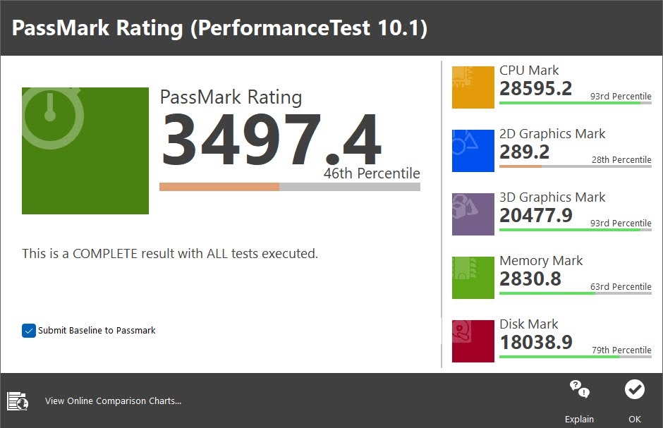 Ar PassMark PerformanceTest mēs varam iegūt sistēmas kopējo veiktspējas novērtējumu. ROG STRIX B660-F GAMING WIFI te ir 3497 punkti, kas nedaudz atpaliek no Z690 čipseta uzrādītā.