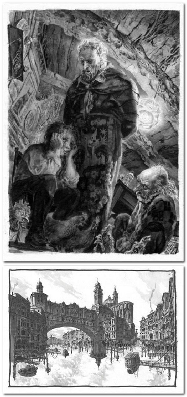 Saruna izstādē. Franču valodā. 14. attēls ir no filmas. 15. un 16. attēls ir no citiem ilustratora darbiem. Attēlus 1-7. skatīt 1. rakstā.