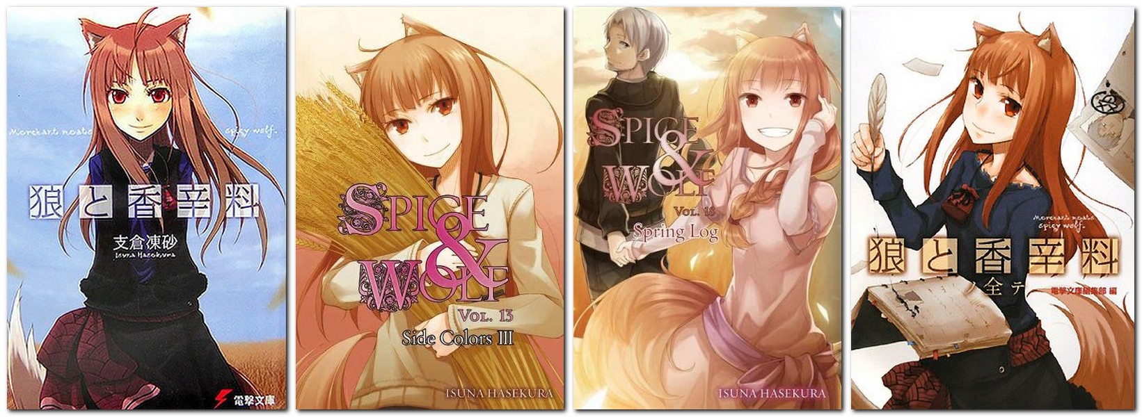 Vieglo romānu sērija ar 22 sējumiem, ko saraksttījis Isuna Hasekura, tā ir viņa līdz šim ietekmīgākais darbs, un tas ir radījis daudzus pielāgojumus un papildinājumus, tostarp anime, mangas un videospēles. 2016. gadā sāka izdot sēriju par vieglajiem romāniem ar nosaukumu "Vilcene un pergaments".