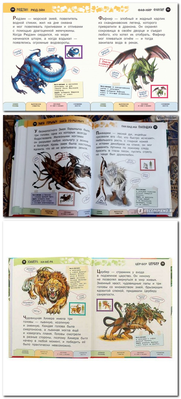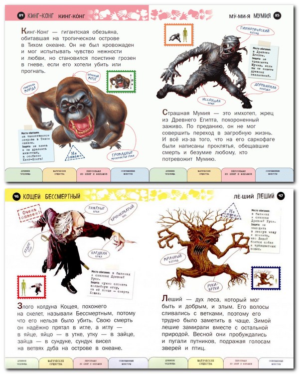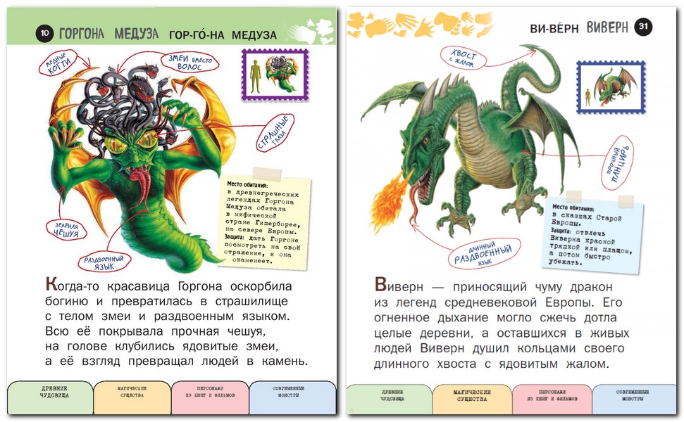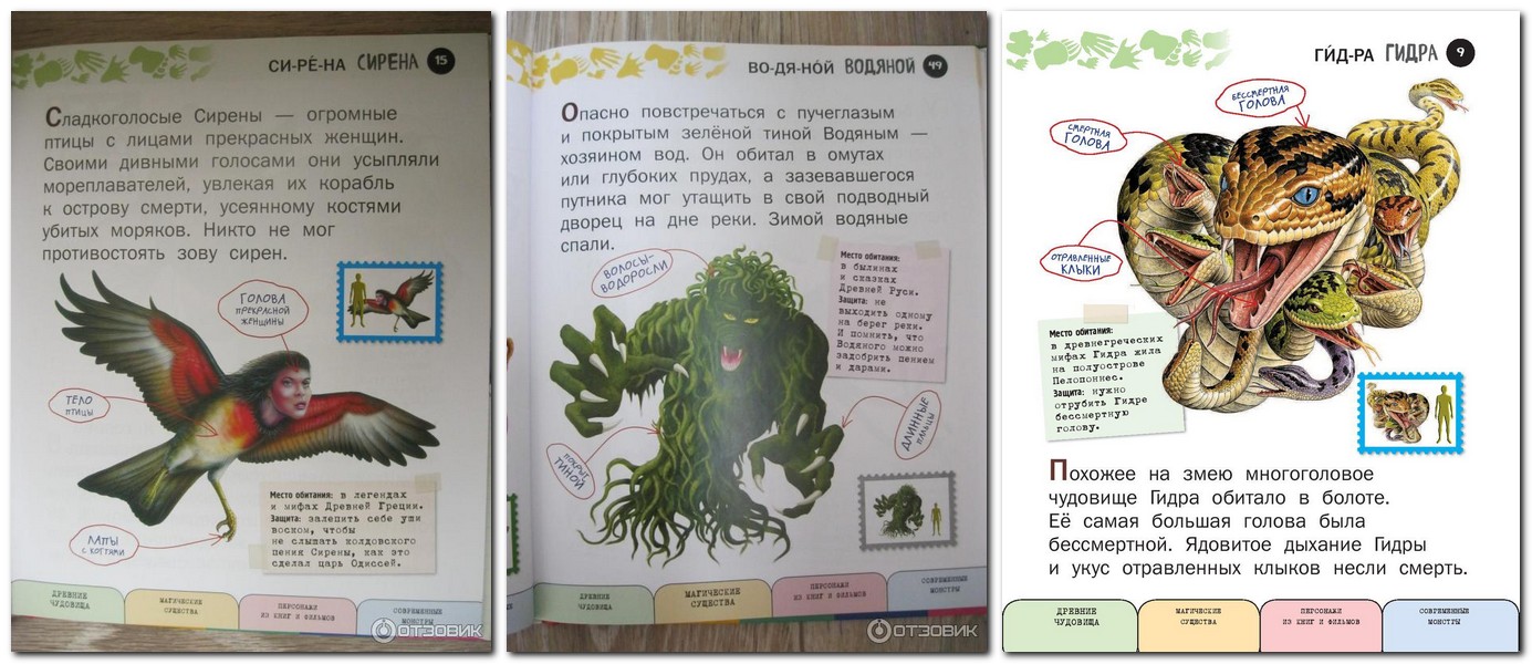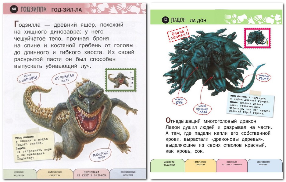 Šī ir īsta bērnu enciklopēdija: viss interesantākais, aizraujošākais, pārsteidzošākais - un ar lieliem burtiem. Grāmatā ar lieliem detalizētiem zīmējumiem ir informācija par vairāk nekā 100 fantastiskām radībām: vienradžiem, pūķiem un burvēm, pasaku un mītu varoņiem, zinātniskās fantastikas filmu varoņiem. Grāmatā ir īsi teikumi, interesanti stāsti, un to lasīt nemaz nav biedējoši, jo ir aizsardzība pret katru briesmoni.