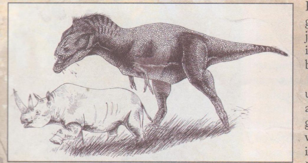 Johansons un viņa kalps savām acīm redzēja, kā šis zvērs ar vienu milzīgu kodienu satvēra degunradža kāju un sāka to garšīgi kraukšķināt. Tad viņa zobi iegrima degunradža ķermenī un izrāva no tā lielu gaļas gabali.