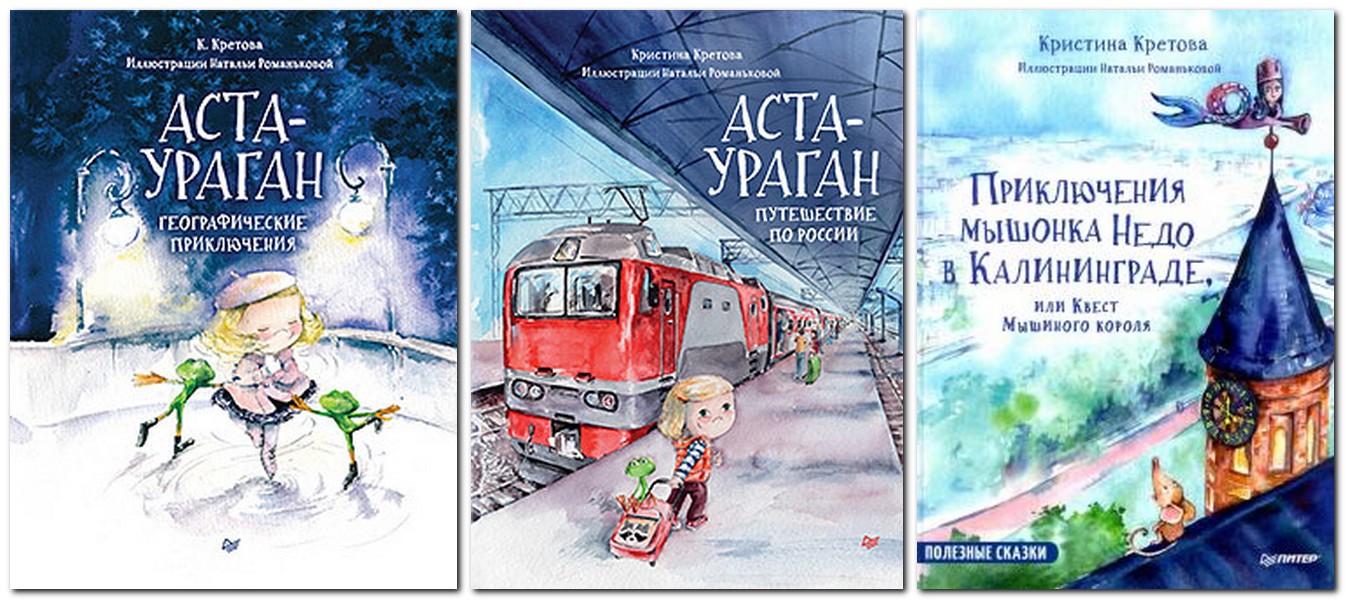 Kristīna Kretova ir Sanktpēterburgas bērnu rakstniece. Meklējot interesantus stāstus, viņa apceļoja 50 pasaules valstis. Viņas grāmata “Asta-Viesuļvētra: ģeogrāfisks ceļojums” burtiski pirmajā pārdošanas mēnesī kļuva par bestselleru, un stāsta turpinājums iekļuva 2019. gada gaidītāko grāmatu sarakstos. Pasaka par zilmataino nāriņu Linu-Marlinu, kuras ilustratore tika izvēlēta uz konkursa pamata, vispirms ieguva lielu popularitāti sociālajos tīklos, un pēc tam tika izlaista uzreiz divos formātos - akvarelis un zenkrāsojums. Kristīna raksta par mūsdienu pasauli un to, kā vienmēr izdosies tiem, kas pieliek pūles.