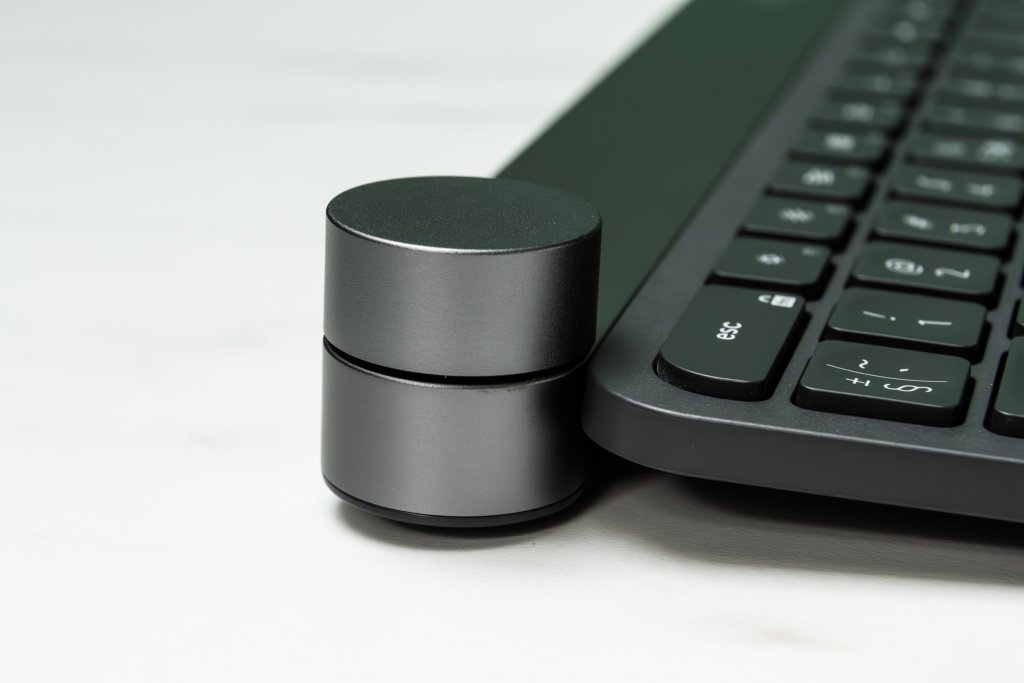 Pēc dizaina tastatūra ir tāda pati, kā jau iepriekš apskatītā MX Keys, bet ar nelielu papildinājumu – Creative Input Dial jeb apaļu ritenīti kreisajā augšējā stūrī, zem kura paslēpta kaudze funkciju.
