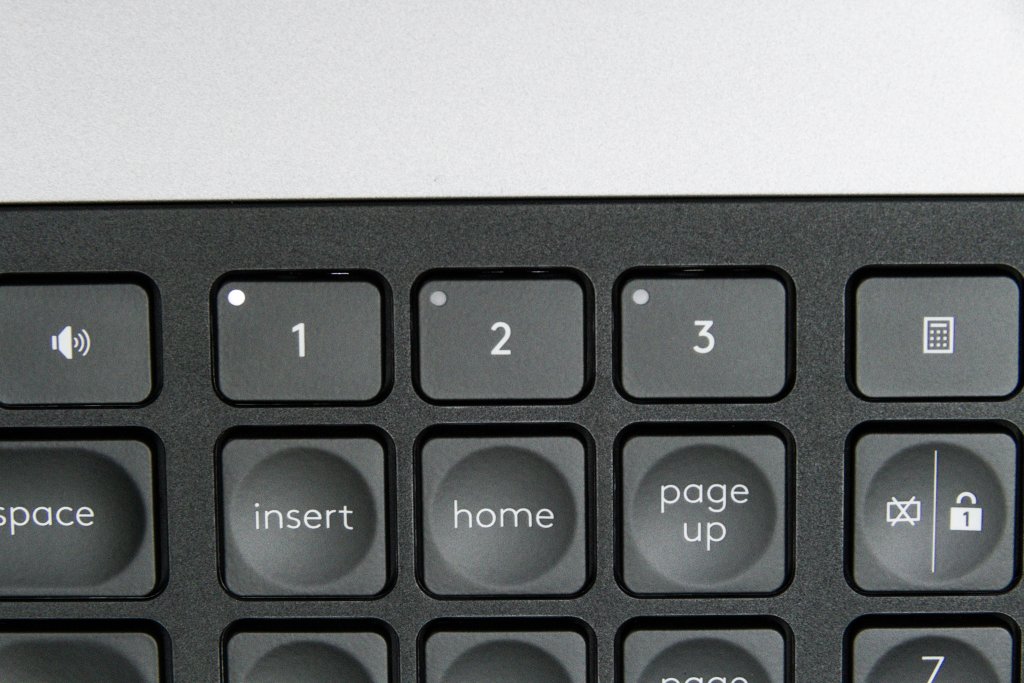 Tastatūrai ir plakani taustiņi, uz kuriem ir nelielas iedobes, kas padara to ērtu raktīšanas darbiem. Taustiņiem ir skaņa, taču tā nav skaļa un uzbāzīga – apkārtējiem netraucēs. Nedaudz mulsina dažas F taustiņu rindas un Num pad ciparnīcas sadaļas augšpusē redzamās ikonas, uz tām paskatoties grūti uzminēt to funkcionalitāti. Options+ lietotnē ir atrodams šo ikonu skaidrojums.