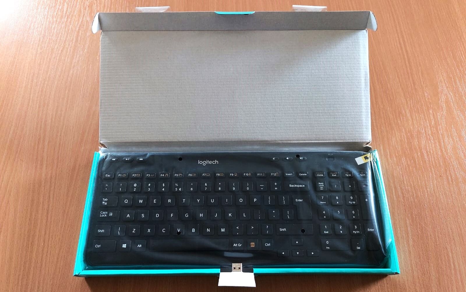Komplektācijā iekļauts | Tastatūra, Logitech uztvērējs, 2 AA baterijas (iepriekš uzstādītas), lietošanas pamācība |
