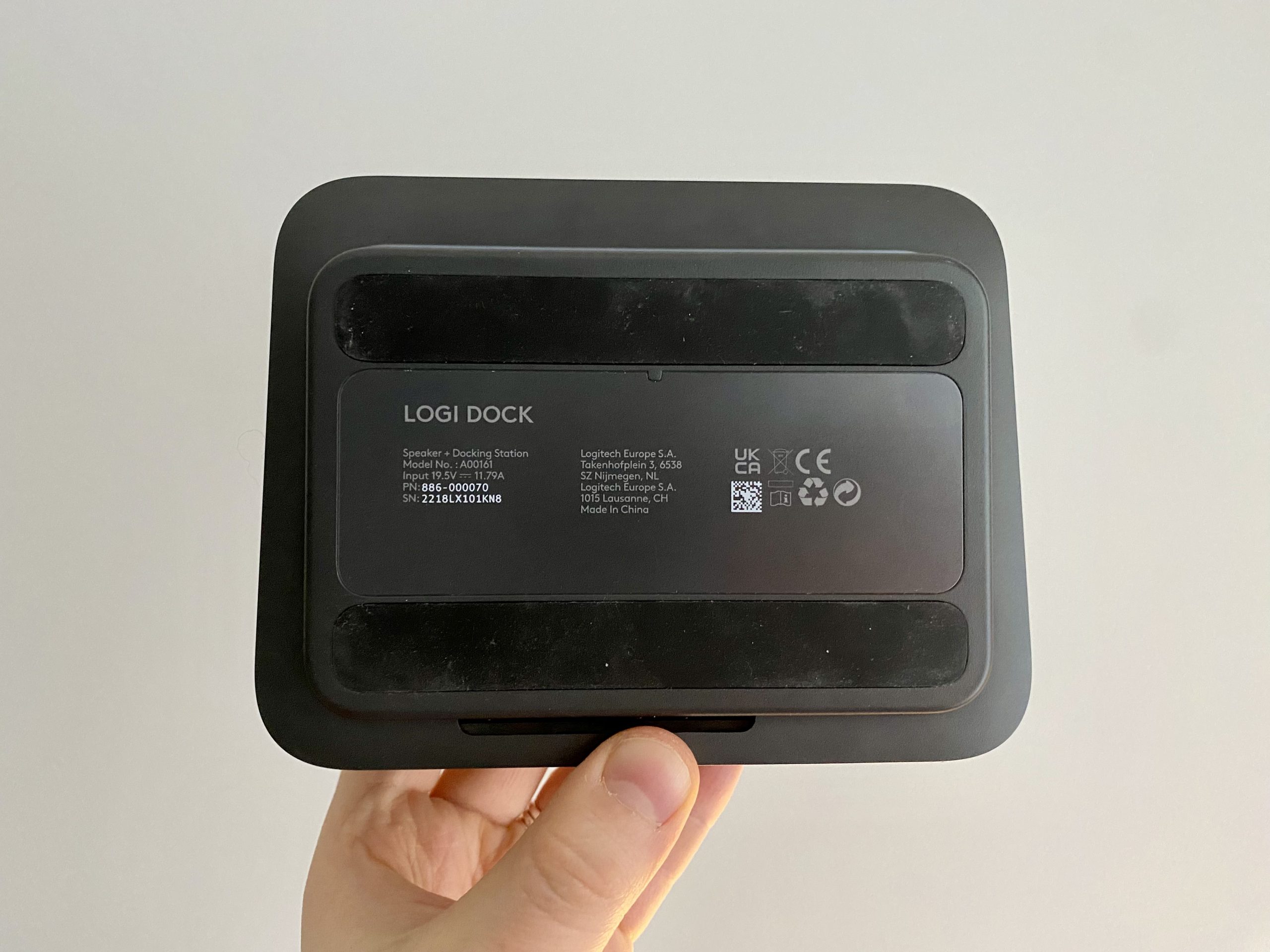 Ierīce stāv uz gumijotām kājiņām, kam ir praktiska nozīme. Logi Dock nekur pati nesadomās nošļūkt no galda un stāvēs tieši tur, kur to būsim novietojuši.