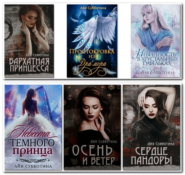 2017 Горький шоколад 2018 Сердце Пандоры 2018 Мальвина 2018 Малышка 2018 Бархатная Принцесса 2018 Осень и Ветер 2018 Невеста Красного ворона 2018 Невеста Темного принца 2018 Непорочная для Мерзавца 2019 Молчи обо мне 2020 Проклятие для Обреченного 2020 Чужая игра для Сиротки - в процессе написания 2020 Забудь обо мне - в процессе написания