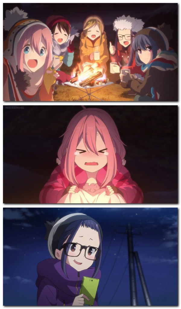 Tomēr tas, kas sākas, kā vienmēr, viena no Rina parastajām kempinga sesijām, kaut kā beidzas kā pārsteigums, jo apmaldījusies cita meitene Nadesiko Kagamihara ir spiesta apmesties viņas kempingā. Viņa sākotnēji plānojusi redzēt gleznaino kalnu skatu uz Fudži kalnu, taču Nadehiko plāni izjūk, kad viņa nonāk gandrīz līdz galamērķim, taču ir pārgurusi un aizmieg uz soliņa. Viena un bez citas izvēles, viņa meklē palīdzību no vienīgās citas tuvumā esošās personas - Rinas. Neskatoties uz savu sasteigto tikšanos, abām meitenēm tomēr ir patīkama nakts kopā, ēdot rāmenu un sarunāties, kamēr ugunskurs viņu silda. Un pat pēc tam, kad Nadesiko māsa beidzot viņu vēlāk naktī atrod, abas meitenes mierīgi pārdomā cita kempingu ceļojuma iespēju.