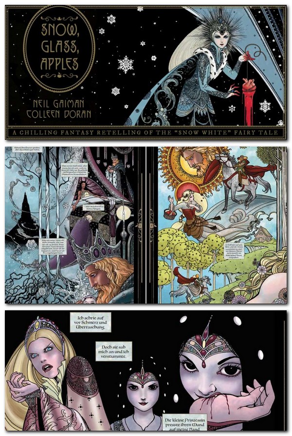 2019. gadā Kolīna Dorana to adaptēja grafiskā romānā, ko publicēja Dark Horse Comics. Adaptācija ieguva 2020. gada Eisnera balvu par labāko adaptāciju no cita medija. Šausmu rakstnieku asociācija arī pasniedza grafisko romānu "Sniegs, stikls, āboli" Brema Stokera izcilāko sasniegumu grafiskā romāna balvu.