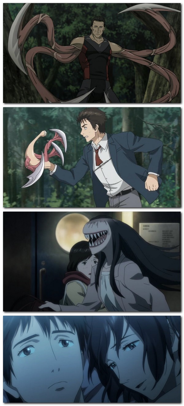 Vēsā vakarā no debesīm uz Zemi lēni nolaižas nesaprotami priekšmeti. Nav zināms, cik to ir, un tas notiek dažādās vietās. Tie ir apmēram tenisa bumbiņas lielumā un apmēram tādi paši. Kad tie piezemējās, no tiem sāka līst laukā tārpi. Kā noskaidrojās, kats no šiem "parazītiem" meklēja organismu no miesas un asinīm, kurā varētu dzīvot. Parazīts iemiesojās ķermenī un sagrāba tā smadzenes, lai pakļautu savu saimnieku. Taču vienam parazītam nepaveicās, viņš iemiesojās pusaudzī, taču spēja pakļaut tikai viņa roku, bet līdz smadzenēm netika. Pusaudzi sauca Sinici Izumi un tagad viņa labā roka sāka dzīvot pati savu dzīvi, vēlāk pat iegūstot vārdu Migi. Ar laiku Migi pat iedraudzējas ar puisi, kamēr pārējie parazīti sāk apēst apkārtējos cilvēkus, lai iegūtu pārtiku. Migi nespēja nogalināt Sinici un sāk aizsargāt viņu no sev līdzīgiem. Bet pats Sinicii svēti tic, ka cilvēka dzīvībai nav cenas, tāpēc parazītus, kas atraduši sev ķermeni ir jāiznīcina.