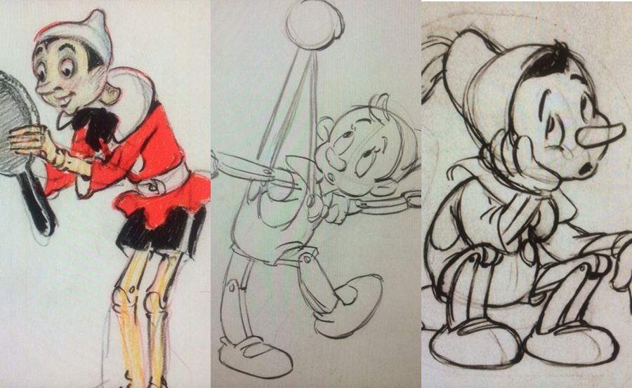 Pirmajās skicēs Pinokio atgādināja klasisku stūrainu lelli ar asu degunu un plānām rokām un kājām. Disnejs redzēja, ka kaut kas nav kārtībā. Varonis neizraisīja simpātijas, tā bija tikai lelle. Jauna tēla atrašana prasīja vairākus mēnešus, līdz jaunais animators Milts Kāls piedāvāja aizmirst, ka varonis ir marionete, un tēlot mazu zēnu, un tikai tad pabeigt locītavas.