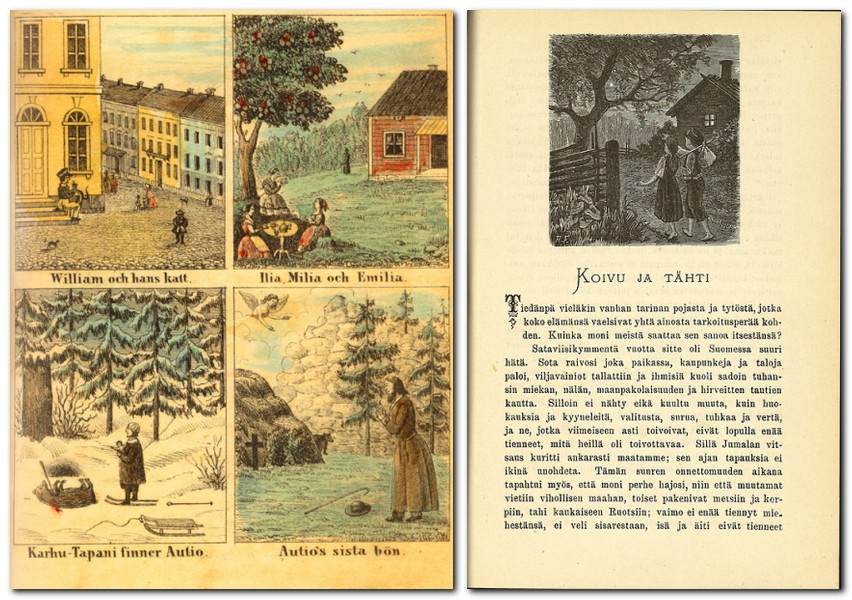 Somu dzejnieks un rakstnieks Sakariass Topeliuss sāka sacerēt pasakas, iedvesmojoties no viņa laikabiedra H. K. Andersena piemēra. Tāpat kā dāņu stāstnieks, Topeliusa varoņi var būt vecas priedes, flīģeļa gailis un pat saules stariņš. Bet viņa neparasti poētisko stāstu galvenais varonis būtu jāsauc par ziemeļu dabu. Rakstnieks sacīja, ka "viņš uzauga uzskatot, ka dabā viss dzīvo, jūt un runā". Karēlijas māksliniece Tamāra Jufa, kurai ziemeļu ainavas kļuva ne tikai par tēmu, bet arī par stāsta galveno fonu, ilustrēja vienpadsmit Topeliusa pasakas, un viņa maģiskā pasaule atrada unikālu šarmu.