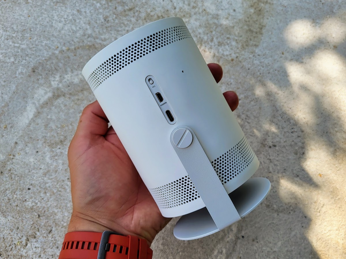 The Freestyle projektoram ir iebūvēti 360 grādu skaļruņi, kas ir tīri labi, ja filmu grasies baudīt divatā, bet lielāks skatītāju bars skaņu bojā un slāpē. Samsung gan sola, ka vari The Freestyle projektoram pievienot Wi-Fi bezvadu skandu.