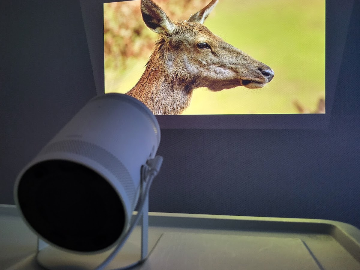 Ja atmetam šīs mazās neērtības, tad The Freestyle projektora attēls viegli aptumšotā istabā izskatās forši. Jā, te nav 4K izšķirtspējas, bet to arī no tik maza projektora gaidīt nevajag. Bērni ir absolūtā sajūsmā par multfilmām uz sienas, arī pieaugušajiem būs kāds prieciņš, kad norietēs Saule.