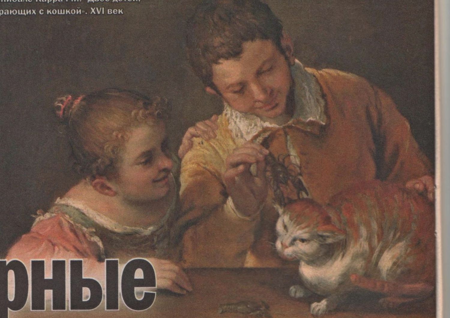 Un lūk mēs nolemām, ka atradām atbildi uz iepriekš uzstādīto jautajumu, un nomierinājamies ar to, taču, kā izrādījās paagri. Turpmākie meklējumi noveda mūs pie svaigākiem audekliem. Piemēram, itāļa Annibale Karračči glezna ar nosaukumu “Divi bērni, kuri plucina kaķi”, kura uzzīmēta XVI gadsimtā. Fizionomija kaķim, teiksim tieši, dīvaina, bet šeit tas ir saprotams – “labie” bērneļi mēģina ar vēža spīli noķert nabaga dzīvnieku aiz auss, bet kaķim tas ir acīmredzami sāpīgi un nepatīkami.