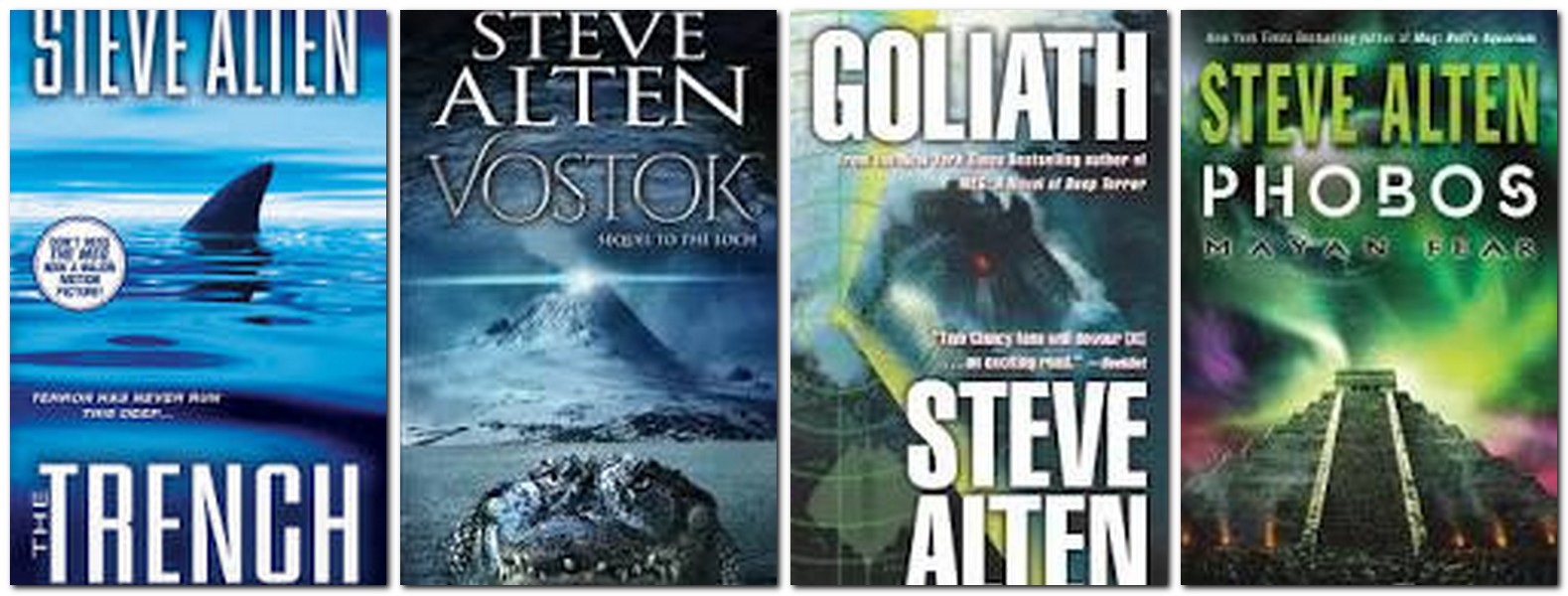 Neapmierināts ar jauno darbu, viņš nolēma uzrakstīt romānu, par kuru bija domājis daudzus gadus. Tā kā viņš strādāja dienu un vakaru, viņš varēja rakstīt tikai no pulksten 22 līdz 3, kā arī nedēļas nogalēs. Pēc 8 mēnešiem viņš pabeidza darbu pie rokraksta, kuru toreiz sauca “Megs: dziļa terora romāns”. Grāmata kļuva par bestselleru, raksta New York Times, tajā bija paredzēts uzņemt filmu, taču studijas reorganizācijas dēļ tā nekad netika veidota. Līdz šim visā pasaulē ir pārdoti vairāk nekā miljons šīs grāmatas eksemplāru. Tad Stīvs sāka strādāt pie triloģijas, kuras galvenā tēma ir pravietojums, kas ierakstīts senajā maiju kalendārā un paredz, ka cilvēce ies bojā 2012. gada 21. decembrī: “Mayan Testament”, “Mayan Resurrection” un “Mayan Message”. Stīvs par pamatu saviem stāstiem izmanto precīzus zinātnes datus.