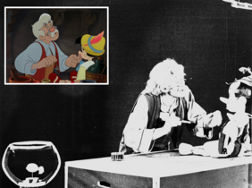 [8] Kristians Rabs Džeppeto lomā. Aktieri ne tikai ierunāja varoņus, bet arī spēlēja tos tiešraidē, kalpojot par atsauci māksliniekiem / Walt Disney Productions