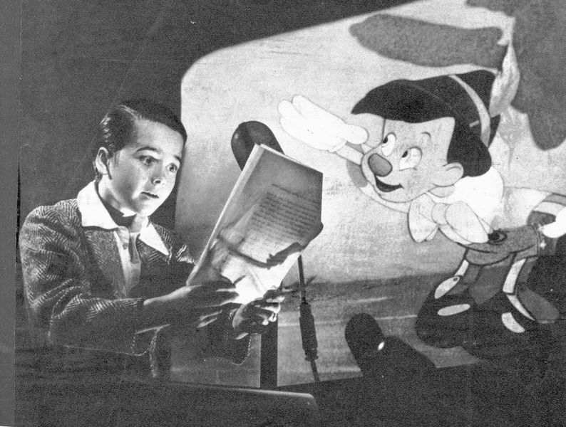 [10] Desmit gadus vecais Diks Džonss, Pinokio balss. Disnejs uzstāja, ka balss aktierspēlei jāizmanto īsts bērns / Walt Disney Productions
