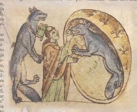 “Viņš bija cilvēks, kuram bija paradums staigāt kā vilkam, tas ir, vilka veidolā, vilka izskatā, un viņa pēcnācēji medīja kopā ar viņu, un viņi, esot vilku veidolā, nogalināja ganāmpulkus, un viņu vērda bija Laiganeks Faelads, jo viņš bija pirmais no tiem, kas pieņēma vilka veidolu”.