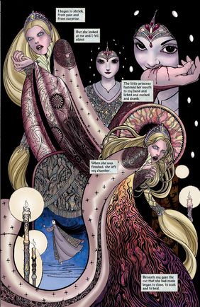 Stāsts atstāsta slaveno Sniegbaltītes pasaku no Sniegbaltītes pamātes skatpunkta, kura tradicionāli ir gabala ļaundara. Pamāte izmisīgi cīnās, lai glābtu valstību no savas nedabiskās un briesmīgās pameitas. Galu galā viņa ir neveiksmīga, jo sākotnējā stāsta "laimīgās beigas" joprojām notiek, neskatoties uz viņas centieniem to novērst. Stāsts ietver vampīrisma, incesta, pedofilijas un nekrofilijas tēmas.