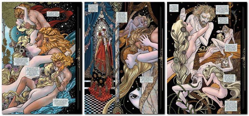 Karaliene bēg, bet zina, ka radījums ēda ābolus, kad Sniegbaltītes izņemtā sirds beidzot pārstāj pukstēt. Divus gadus vēlāk karalieni apciemo princis, un viņa plāno ar viņu apprecēties un apvienot viņu karaļvalsti. Tomēr karaliene nespēj seksuāli apmierināt princi, kurš nepārprotami ir nekrofils, un viņš aiziet. Mājupceļā viņš sastopas ar Sniegbaltītes mirušo ķermeni, kuru apsargā septiņi rūķi. Izbaudot savu nekrofiliju, princis izvaro Sniegbaltīti un negribot izspiež Sniegbaltītes rīklē iestrēgušo ābola gabalu, atdzīvinot viņu. Princis un Sniegbaltīte atgriežas karalienes valstībā un piespriež viņai nāvessodu par burvestību. Karaliene tiek sadedzināta krāsnī, un atklājas, ka stāsts ir viņas pēdējās domas, kad viņa sāk degt līdz nāvei.