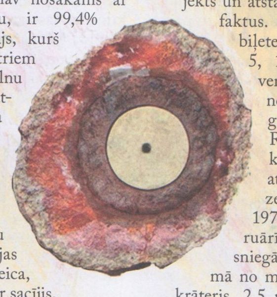 “Es redzēju paraugus, kurus atsūtīja nezināms korespondents, trīs mazus kaut kādus cietus gabaliņus, blāvi pelēkā krāsā, kas izskatījās pēc kaut kāda metāla. To virsmas nebija ne gludas, ne pulētas, bet gan nelīdzenas, un, acīmredzot, stipri oksidējušās. Viena parauga virsma bija izraibināta ar gandrīz mikroskopiskām plaisām. Visu paraugu virsmā vietām bija pārklāta ar bālganu vielu. Šie bālganie pulverveida vielas traipi parādījās plānā kārtā. Smalkais sausais pulveris pielipa virsmai, bet to varēja viegli noņemt ar nagu. Sjūda kungs teica, ka no pirmā acu uzmetiena materiāls izskatījies pēc svina pelēkās krāsas dēļ, bet es sapratu, ka tas nevar būt svins… materiāls bija viegls… gandrīz tik pat viegls, kā papīrs”.